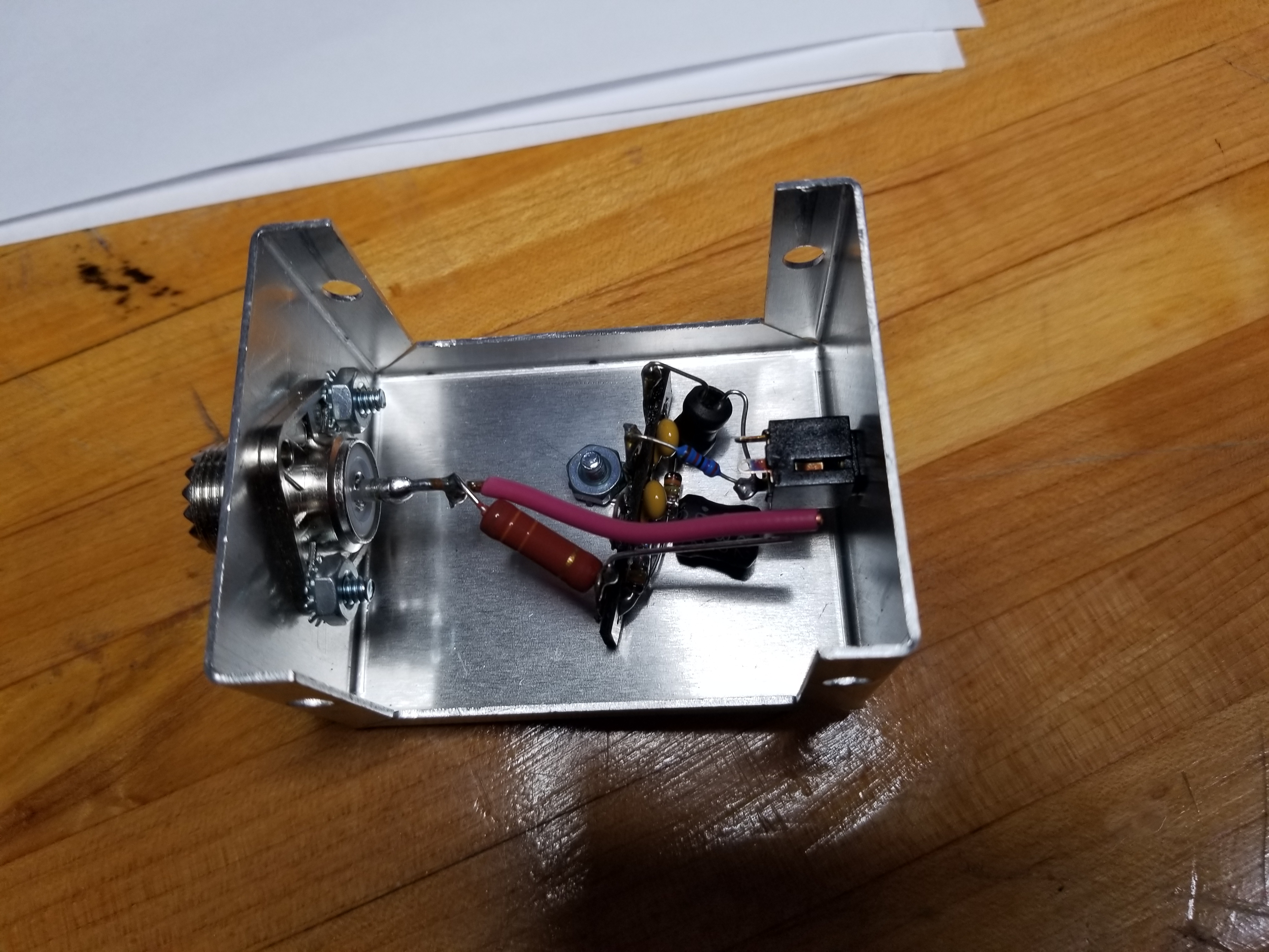 Video showing the AMM-SD1 in operation. Note the negative peaks are higher than the positive peaks indicating weak tubes in my Dentron Clipperton L amplifier. The image in the background is the waterfall graph from the KFS Web SDR. ![]() Inside the envelope detector module. The output is a DC voltage containing the carrier level plus AC representing the modulation. ![]() The USB interface. This module accepts the output of the envelope detector and sends it as a stream over USB for interpretation by the Windows software. This module uses a PIC24 microcontroller. ![]() For comparison, there's a photograph of a General Radio 1931A modulation monitor. |