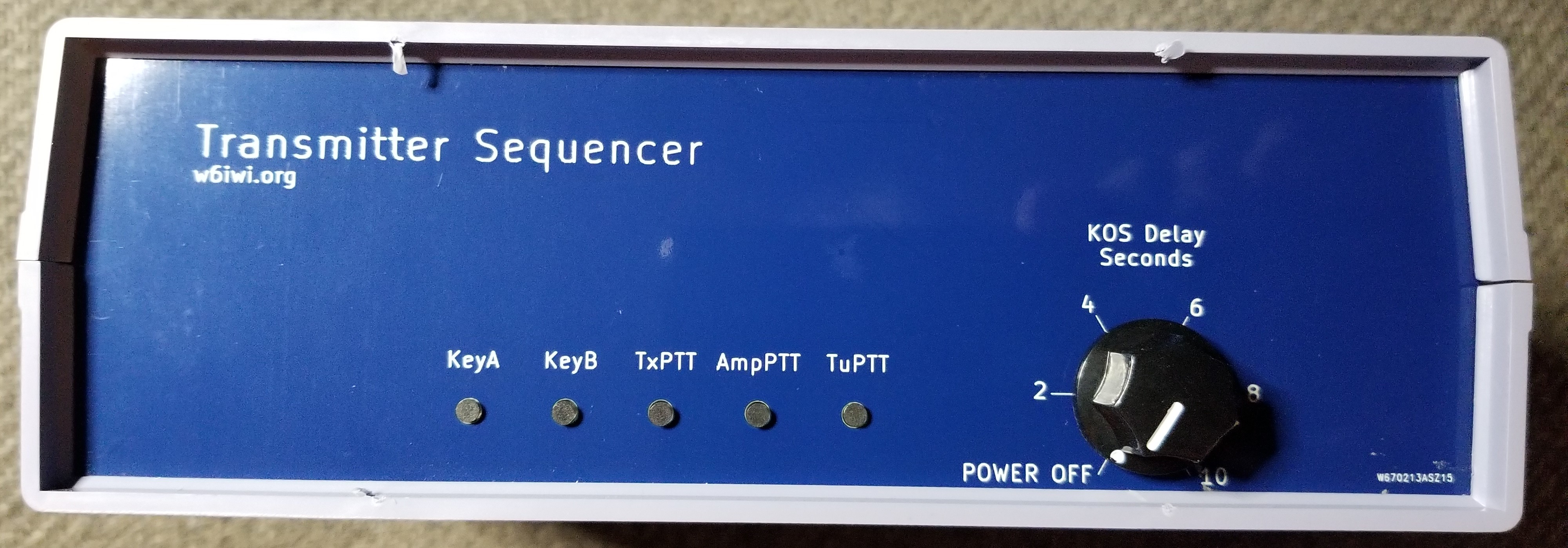 This page will be updated as the project progresses. The current schematic is here. The project is designed to prevent hot switching of the RF bypass relay in an RF amplifier. It does this by putting the amplifier in transmit mode (activating the relay) as soon as a transmit request is received (on one of the key or PTT lines). After a user configurable delay (default 100 ms), the PTT or key signal is passed through to the transmitter. In addition, there is a user settable Key Operated Send dropout time. A front panel pot lets the user set the release time of the amplifier keying output to zero to 10 seconds after the key or PTT line is released. For example, as demonstrated in the video at the right, hitting the KeyB input immediately activates the amplifer enable output. 100 ms later, the KeyB output is enabled. When the KeyB input is released, the KeyB output is immediately released, but the amplifier enable output is not released. The amplifier stays in the transmit mode until the KOS timeout (I generally set it to 3 seconds) times out (such as 3 seconds after the KeyB input is released). KeyA behaves the same as KeyB. These two inputs and outputs typically pass a CW paddle signal through to the transmitter. If a straight key or bug is used, the KeyA and KeyB inputs can be tied together with the KeyA output driving one transmitter and the KeyB output driving another transmitter. There are two additional keying inputs: MicPTT and AuxPTT. These operate similarly to the KeyA and KeyB inputs except that on release, the amplifier transmit enable is released immediately. The amplifier PTT is released after the user confiugrable delay, the same delay that was used on transmit start, with the default being 100 ms. Finally, there is an RTTY Keyboard Operated Send input. This is wired ACROSS the Teletype. When a key on the Teletype is pressed, the start bit plus any space bits in the character result in a high voltage across the Teletype (the full loop supply voltage, which is typically 50 to 100 volts). This trips the KOS functionality of the device, causing the amplifier to be switched to transmit, then, after a delay, the transmitter PTT is enabled. However, during receive, a mark to space transition results in high voltage across the Teletype due to the selector magnet flyback voltage. However, this high voltage pulse is very short compared to a bit time (22 ms for 45.45 baud or 60 wpm). The firmware ignores any high voltage pulses shorter than 11 ms (half a bit time). HardwareRefer to the schematic.